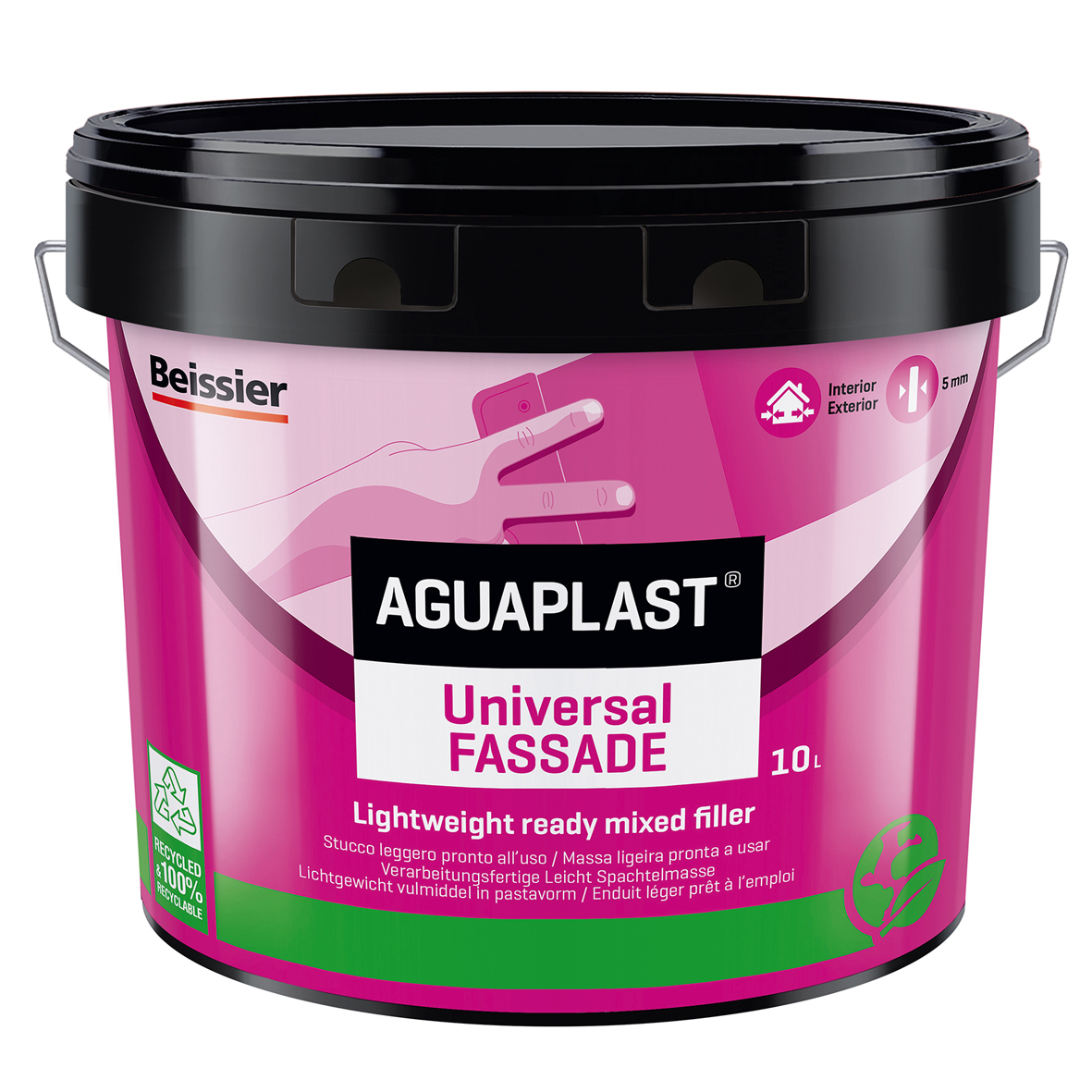 Aguaplast Universal Fassade is een lichtgewicht vulmiddel in pastavorm voor gevels met een groot vulvermogen. Geschikt voor afwerken, uitvlakken en renoveren van alle soorten ondergronden, ook niet absorberende.