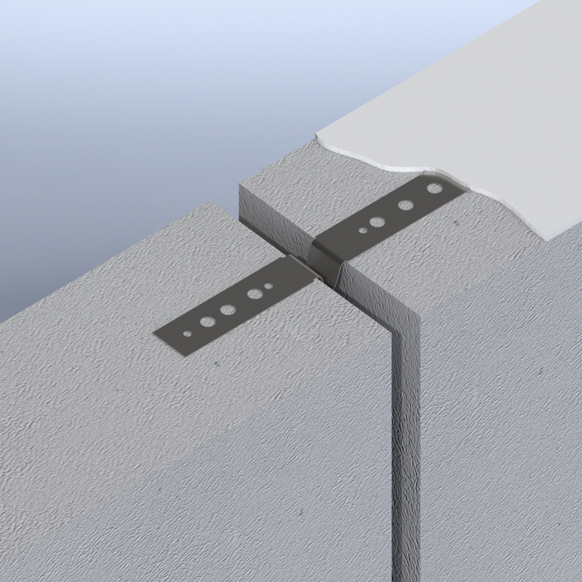Dilaterende geperforeerde platte lijmstrip voor het koppelen van gelijmde kalkzandsteen elementen, blokken of stenen ter plaatse van een dilaterende loodnaad.