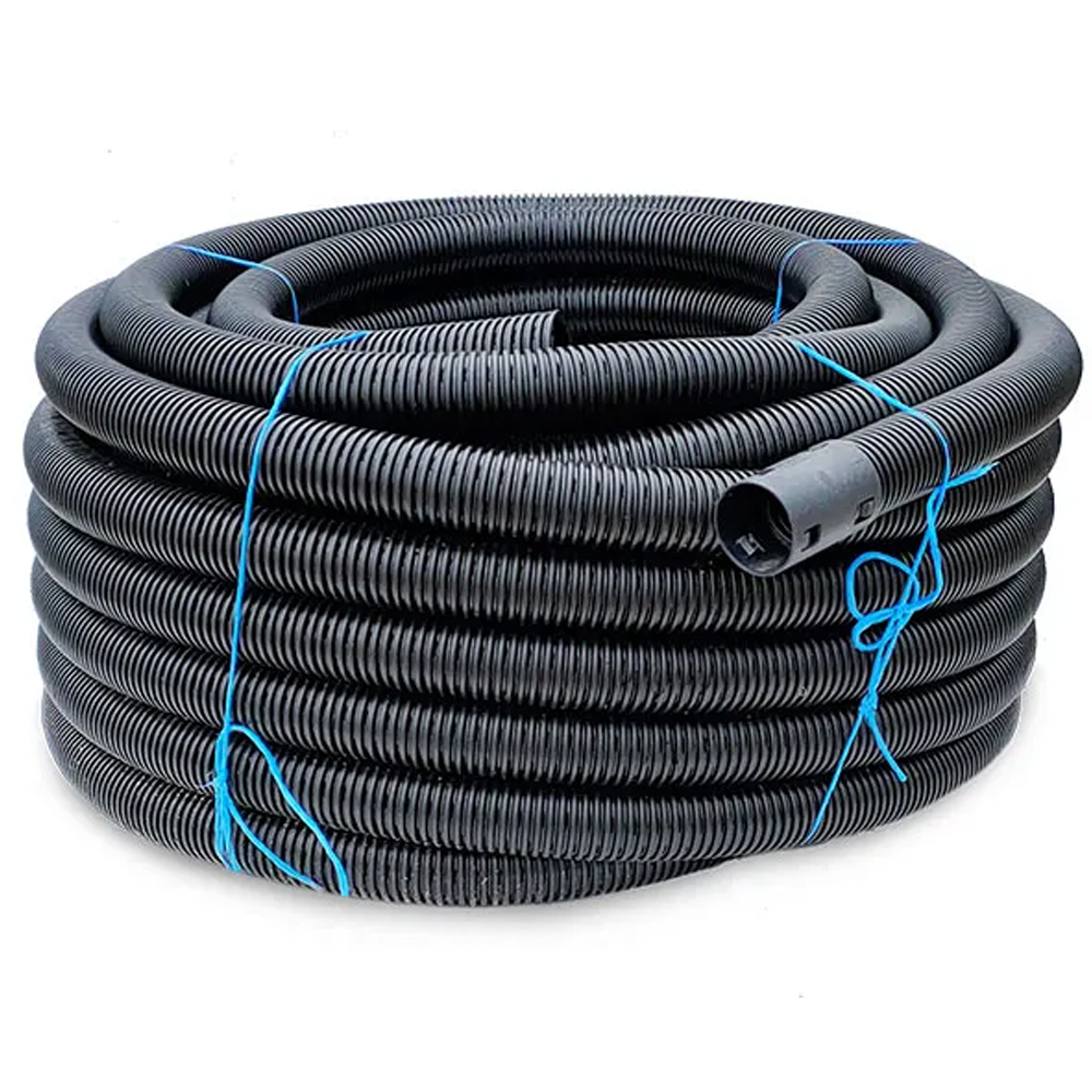 De uitvoering is kaal (zonder mantel), wat hem bijzonder geschikt maakt voor toepassingen waar al gebruik wordt gemaakt van grind, kokos of geotextiel als filtermateriaal. De flexibele kunststof constructie zorgt voor eenvoudige verwerking en maakt de buis bestand tegen belasting in de grond.