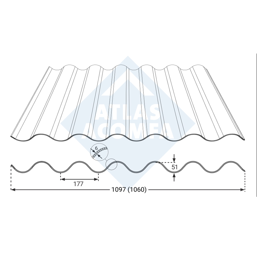 De polycarbonaat golfplaat 177/51 in 3-wandige uitvoering is sterker dan de enkelwandige versie. Door de honingraadstructuur, het gewicht en de glasvezelversterkte grondstof is de plaat uitstekend bestand tegen weersinvloeden en wordt daarom veelvuldig gebruikt in agrarische gebouwen.