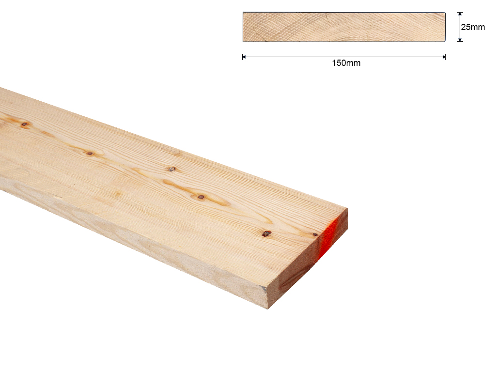 A-Kwaliteit grenenhout plank ruw 25x150 mm