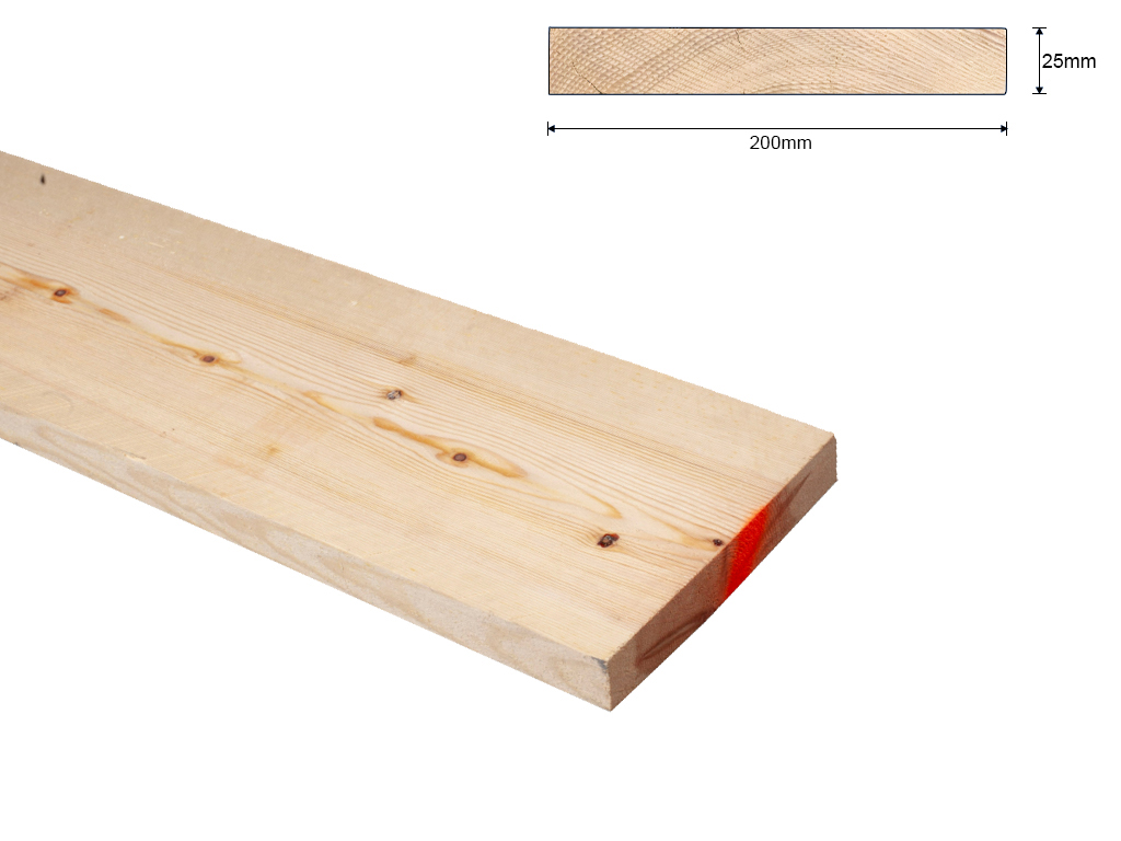 A-Kwaliteit grenenhout plank ruw 25x200 mm