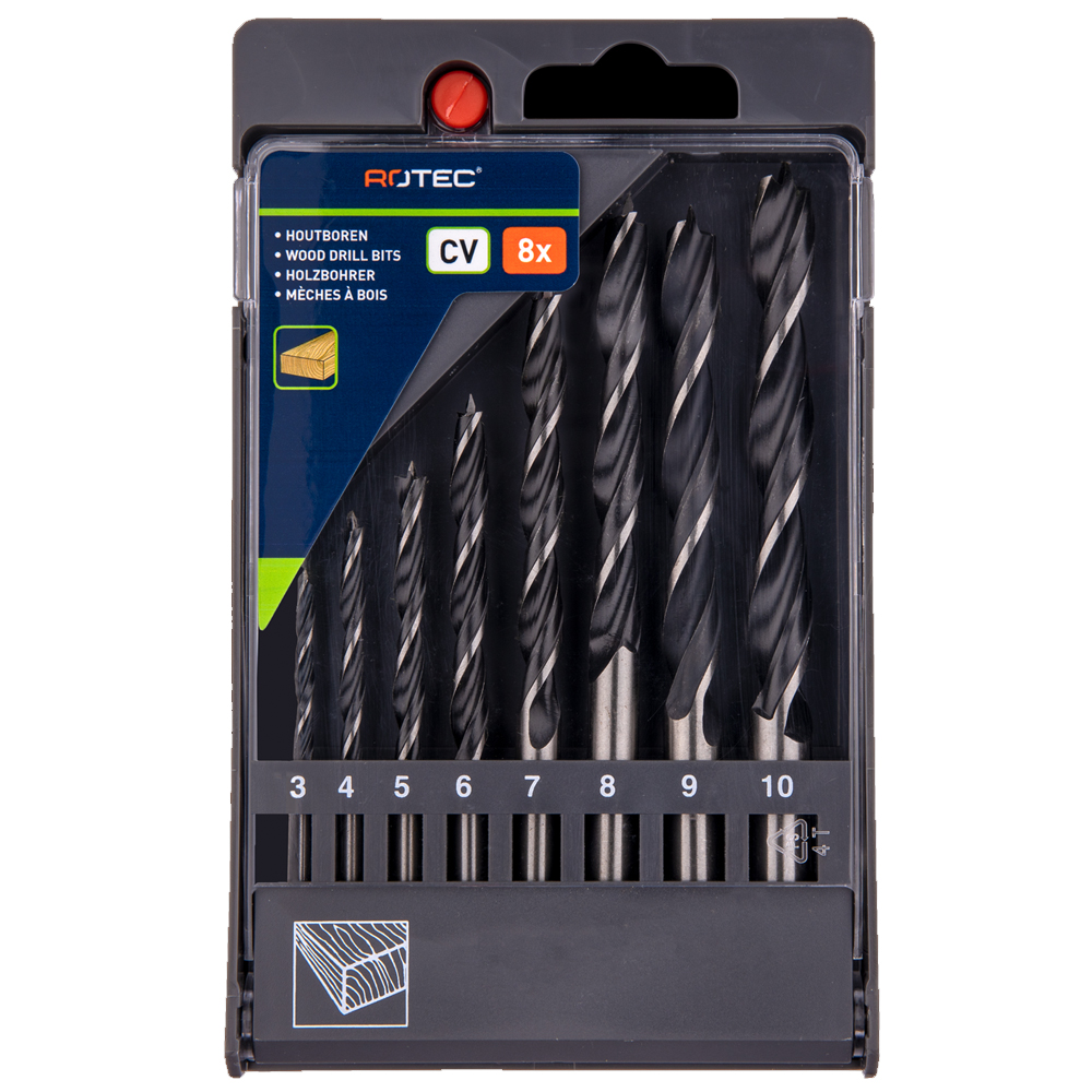 Houtspiraalborenset 8-dlg. 3-10 mm in PVC cassette