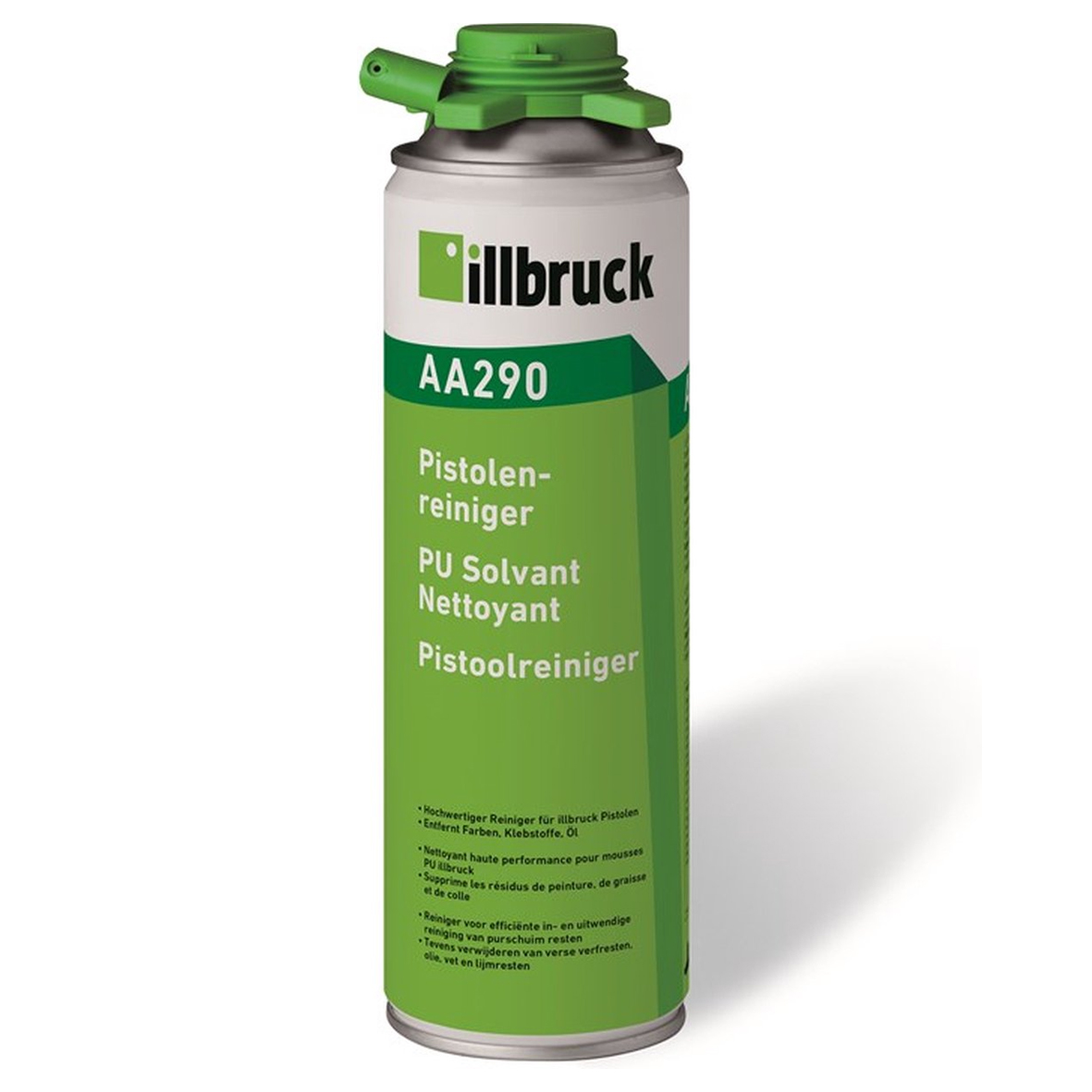 De AA290 pistoolreiniger is speciaal ontwikkeld voor reiniging van de binnen en buitenkant van de pur/schuimpistolen en voor het verwijderen van niet uitgehard polyurethaanschuim. Daarnaast kan dit product ook gebruikt worden voor het verwijderen van verse verfresten, was, vet, olie en lijmresten.