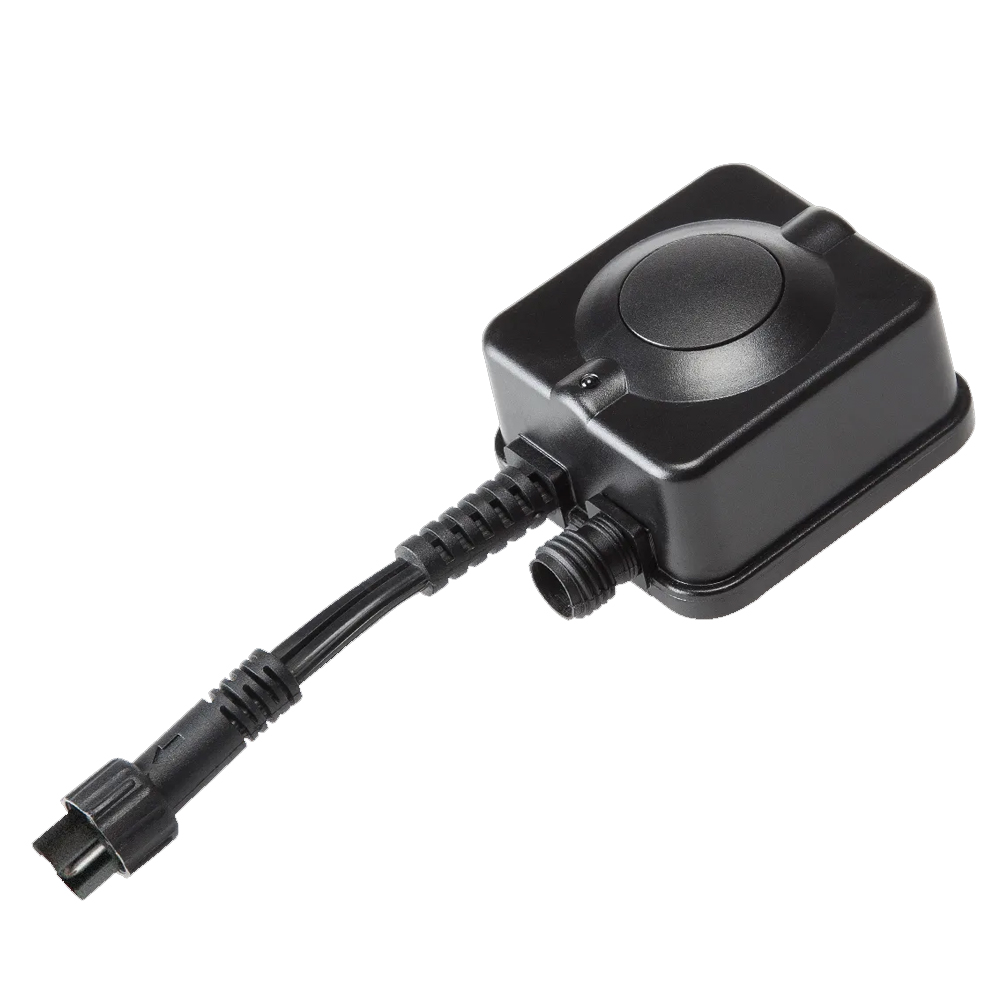 12V-ontvanger, max 150 W. De zwarte receiver is een losse, extra ontvanger voor de afstandsbediening waarop je 9 ontvangers kunt aansluiten. De ontvanger heeft een maximum van 150 watt. Met deze kunststof ontvanger kun je jouw verlichting apart schakelen. De afstandsbediening werkt op radio-frequentie en heeft een bereik tot ca. 40 meter (in open terrein).