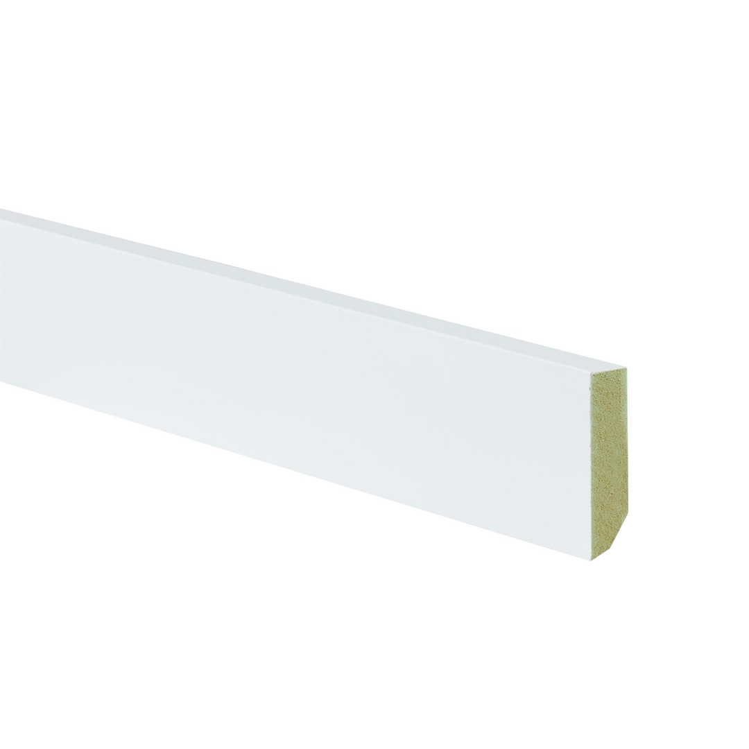 Een plint wordt gebruikt voor de afwerking van overgangen tussen verschillende bouwdelen, zoals tussen vloer en muur. Een plint zorgt voor bescherming tegen stoten, vocht en vuil. Deze MDF vochtwerende plint is eenvoudig te verwerken en bevestigen. Door de strakke afwerking zorgen ze voor een rustige en moderne uitstraling in een interieur.