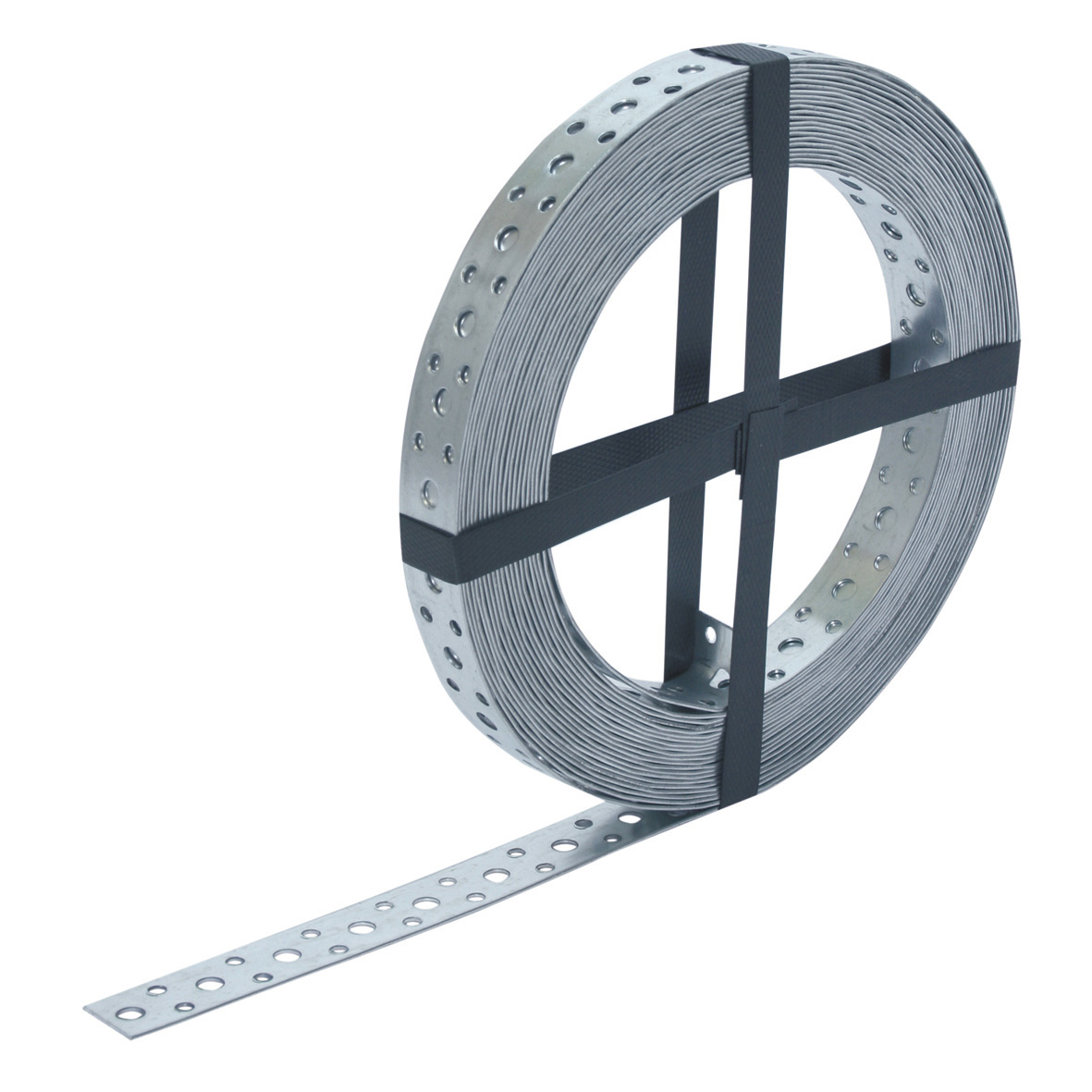Geperforeerd bandstaal op rol met repeterend gatenpatroon. Montageband