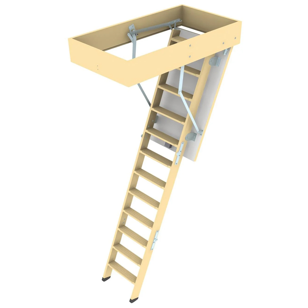 Deze houten vlizotrap van Novoferm bestaat uit drie delen, compleet met houten raveelbak. De trap is in drie delen inklapbaar, waardoor de trap geen zwenkruimte heeft op zolder. De zoldertrap bevat een tweezijdig geïsoleerd luik dat je kunt openen en sluiten met de meegeleverde trekstok. Door de afwerking met behulp van trekveren aan de bovenkant is de bediening heel soepel en is het luik netjes uitgebalanceerd.
