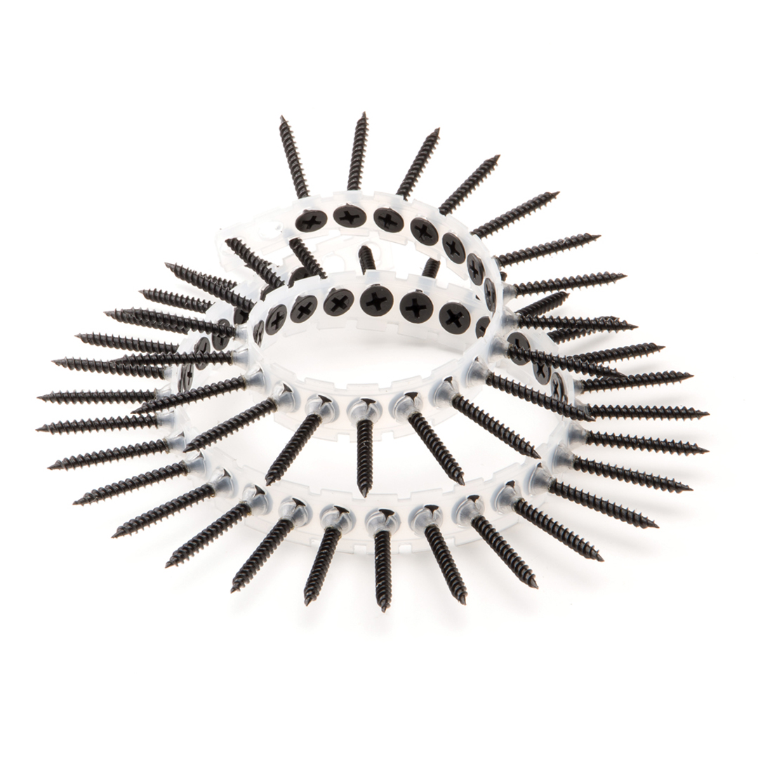 Ze zijn voorzien van grove schroefdraad over de gehele lengte van de schacht. De trompetkop zorgt voor een nette afwerking en is voorzien van Philips 2 aandrijving. De gipsplaatschroeven zitten op een universele strip die in iedere gangbare bandschroefmachine past. De strips bevatten 50 schroeven per stuk.