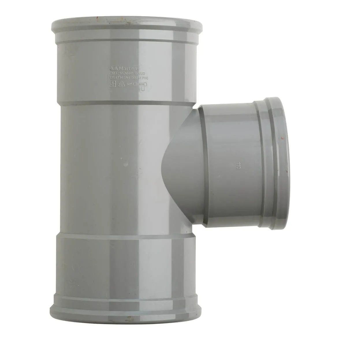 HomeInstallatieRioleringPVC hulpstukken manchetPVC T-stuk 125x110 mm 3xmanchet 87 gr.
