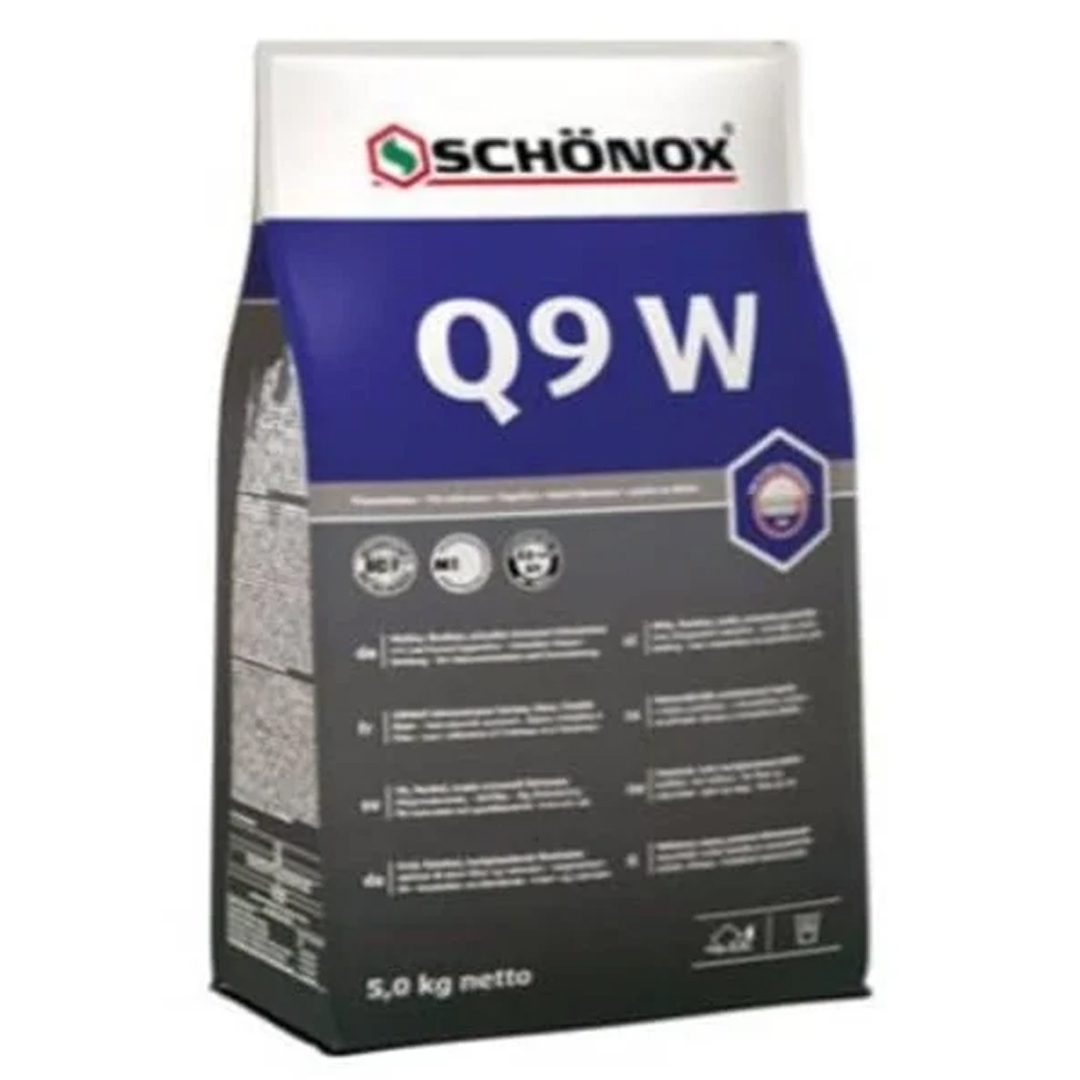 De Schonox Q9 W wit universele poederlijm sneldrogend is een hoogwaardige flexibele tegellijm die speciaal ontwikkeld is voor het professioneel verlijmen van verkleuringsgevoelige natuursteen, porcellanato-grès en keramische tegels. Deze witte poederlijm biedt uitstekende resultaten bij zowel wand- als vloertoepassingen en zorgt voor een duurzame hechting zonder verkleuring van gevoelige materialen.