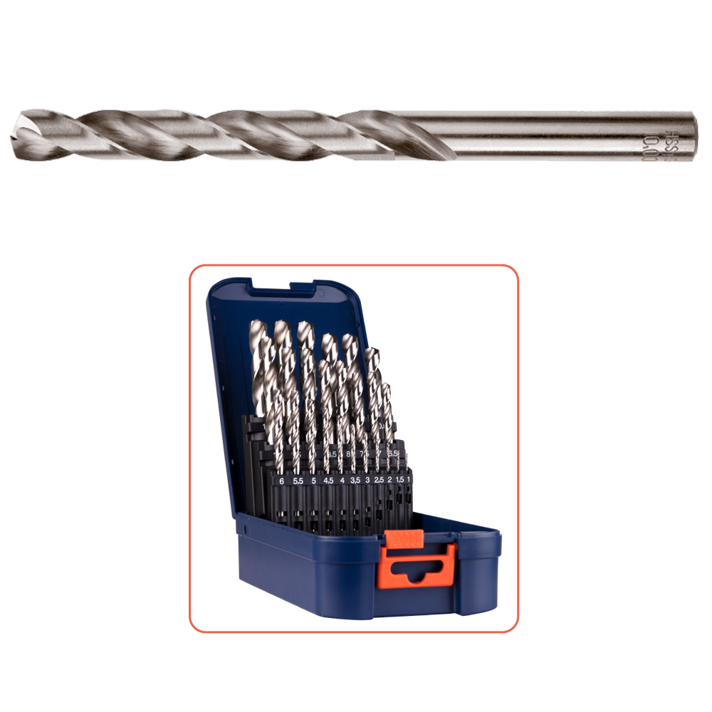 Deze 19-delige spiraalborenset bestaat uit hoogwaardige HSS-G (geslepen) boren en is geschikt voor het nauwkeurig boren in staal, gietijzer, non-ferrometalen en kunststoffen. Dankzij de volledig geslepen uitvoering bieden de boren een hoge maatnauwkeurigheid, lange standtijd en optimale snijprestaties.