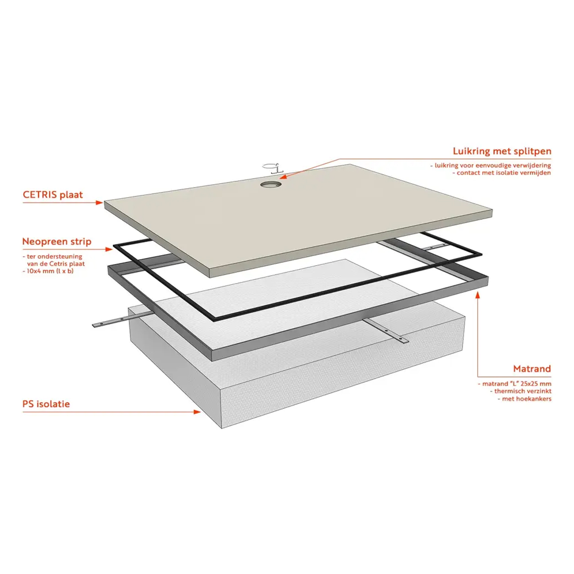 Vloerluik 22 mm verzonken luikring 795x595 mm Rc=3,5