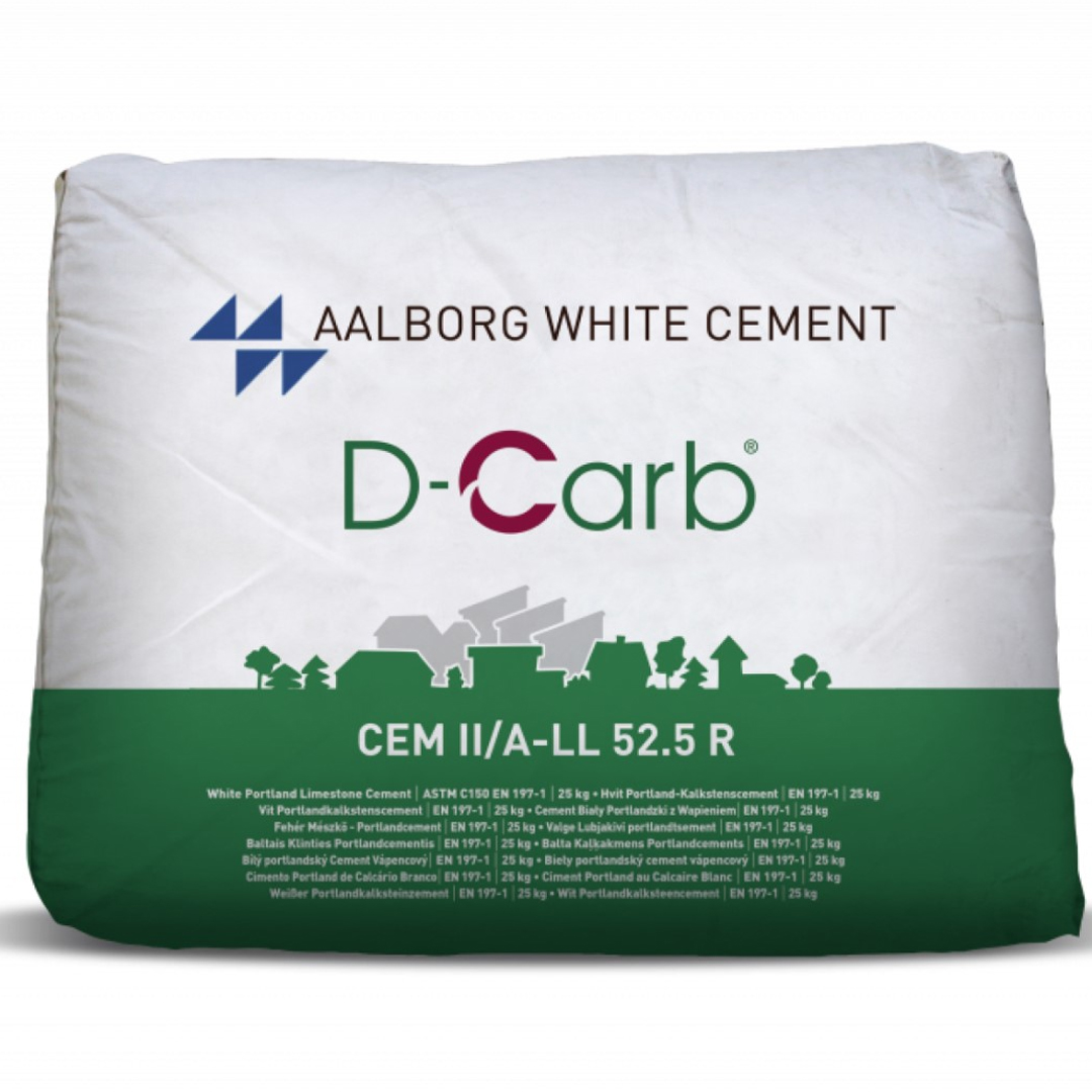 Witte Portland cement CEM II/A-LL 52,5 is een hoogwaardig wit cement dat perfect is voor toepassingen waarbij een egale witte afwerking belangrijk is. Dit D-Carb cement is een duurzame keuze, omdat het ongeveer 15% minder CO₂ uitstoot dan traditioneel wit cement. Daarnaast hardt het snel uit, waardoor je sneller door kunt met je werk. Het levert een sterke en constante kwaliteit die ideaal is voor sierbeton, prefab elementen, terrazzo, sierpleisters en architectonisch beton.