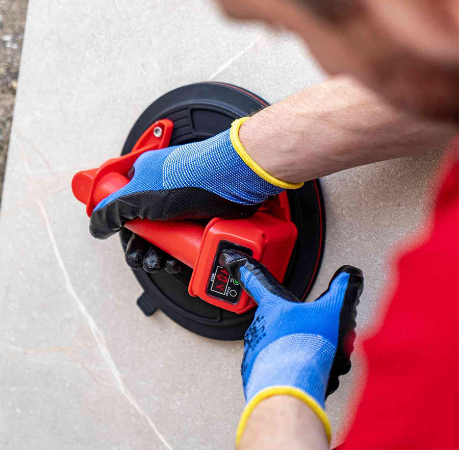 Zuignappen maken het hanteren van zware tegels eenvoudiger en zorgen voor een nauwkeurige plaatsing.